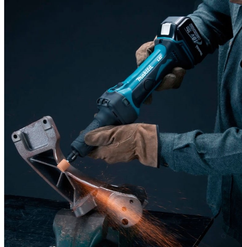 Amoladora Recta Rectificadora inalámbrica a batería 18Voltios Makita DGD800 capacidad pinza 6mm(1/4”) Punto Capacidad Rueda máxima 38mm Velocidad 26000rpm solo maquina no incluye batería ni cargador se compran por separados.