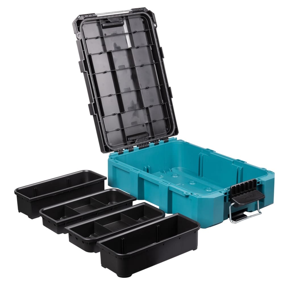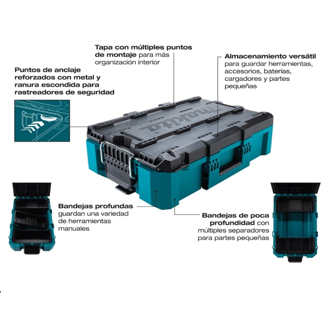 Caja de Herramientas Mediana MAKTRAK™ Makita T-90037 Caja de herramientas mediana para transportar y almacenar herramientas para guardar herramientas, accesorios, baterías, cargadores y partes pequeñas.
