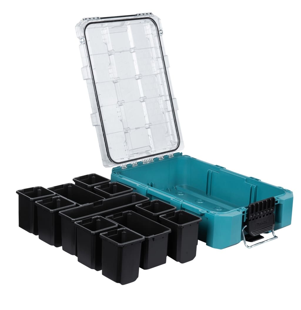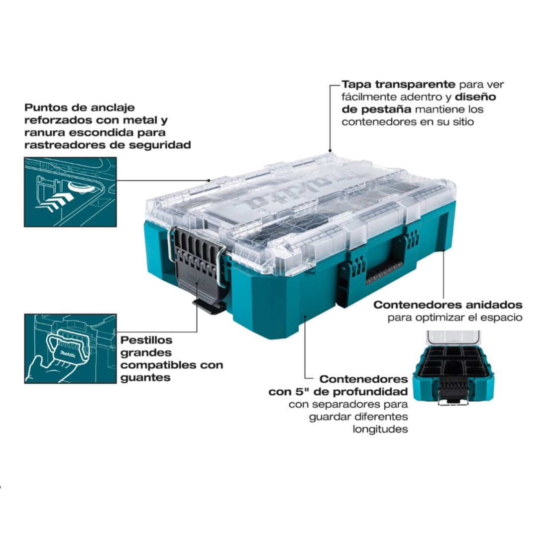 Caja Organizadora Profundo Mediano MAKTRAK™ Makita T-90043 Caja organizadora interior MAKTRAK Organizador mediano profundo con tapa transparente para transportar y guardar herramientas y accesorios.